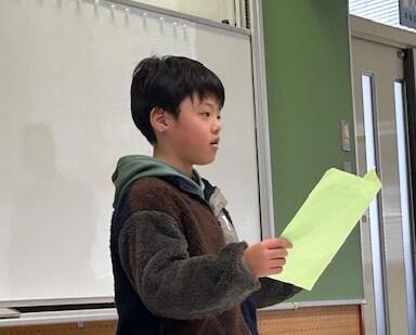 4年生児童代表3名も「2学期にがんばったこと」「3学期にがんばること」をしっかりと自分の言葉で発表することができました。最後に生活指導担当から、「名札をつけることの意味」「ハンカチやティッシュを身につけておくこと」の話がありました。どの学級、学年も落ち着いた雰囲気でしっかりと聞けていました。