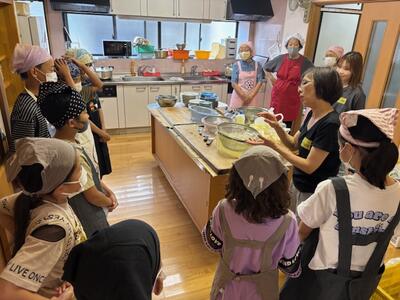 開講式が行われ、活動がスタート。まずは、夕食の買い出しと夕食作りです。地域の方のご指導を受けながら楽しく進んでいます。