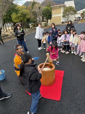 1月24日(土)は、毎年恒例の北小学童わんぱくクラブの餅つき大会がありました。「かわち家」さんの威勢の良いかけ声やパフォーマンスと共に「祝い餅」をついてくださいました。地域の方や保護者、子供たちも「よいしょ!よいしょ!」のかけ声で杵を振り下ろしました。きなこやあんこでつきたてのお餅をいただきました。
