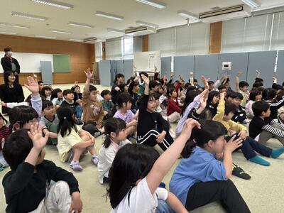授業は、先生たちによる劇からスタート。 「ひじをついて食べる」「口に食べ物が入ったままおしゃべりをする」「お箸を振り回す」などなど……。 わざと「マナーができていない姿」を演じると、子どもたちからは「あーっ!ダメなんだよ!」「行儀悪い!」と鋭いツッコミが飛び交いました。