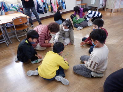 地域の方とカルタをつくったり、昔あそびを楽しんだりしました。