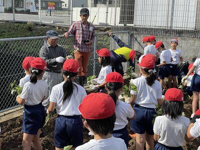 さらに、学習を進める上で、大きな機械が必要である土づくりや農業的な技術が必要であるいもさしについて、さつまいもづくりのプロである地域の農家の方に協力を依頼して、「出会いの会」と「いもさし」を実施することになりました。